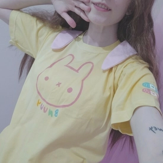 Camiseta estampa Bnuuy original Sharksock. Pintada à mão com tinta de tecido, orelhinhas nos ombros em flanela (pode ser feita sem, deixe suas especificações no fim da compra), band-aids nas mangas e patinha nas costas.