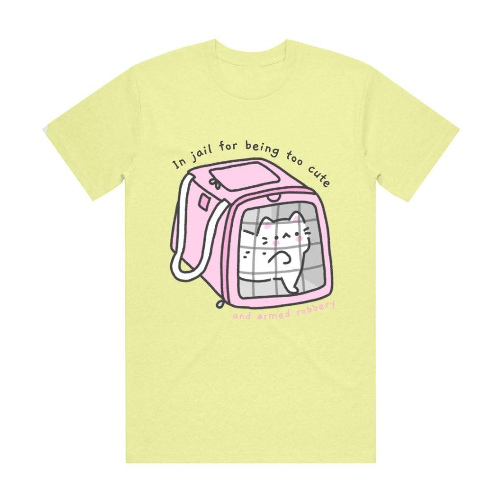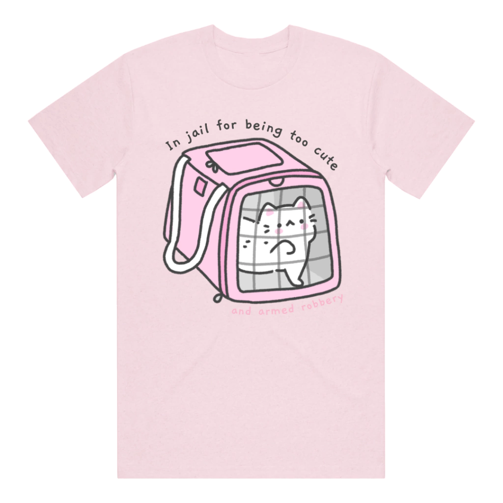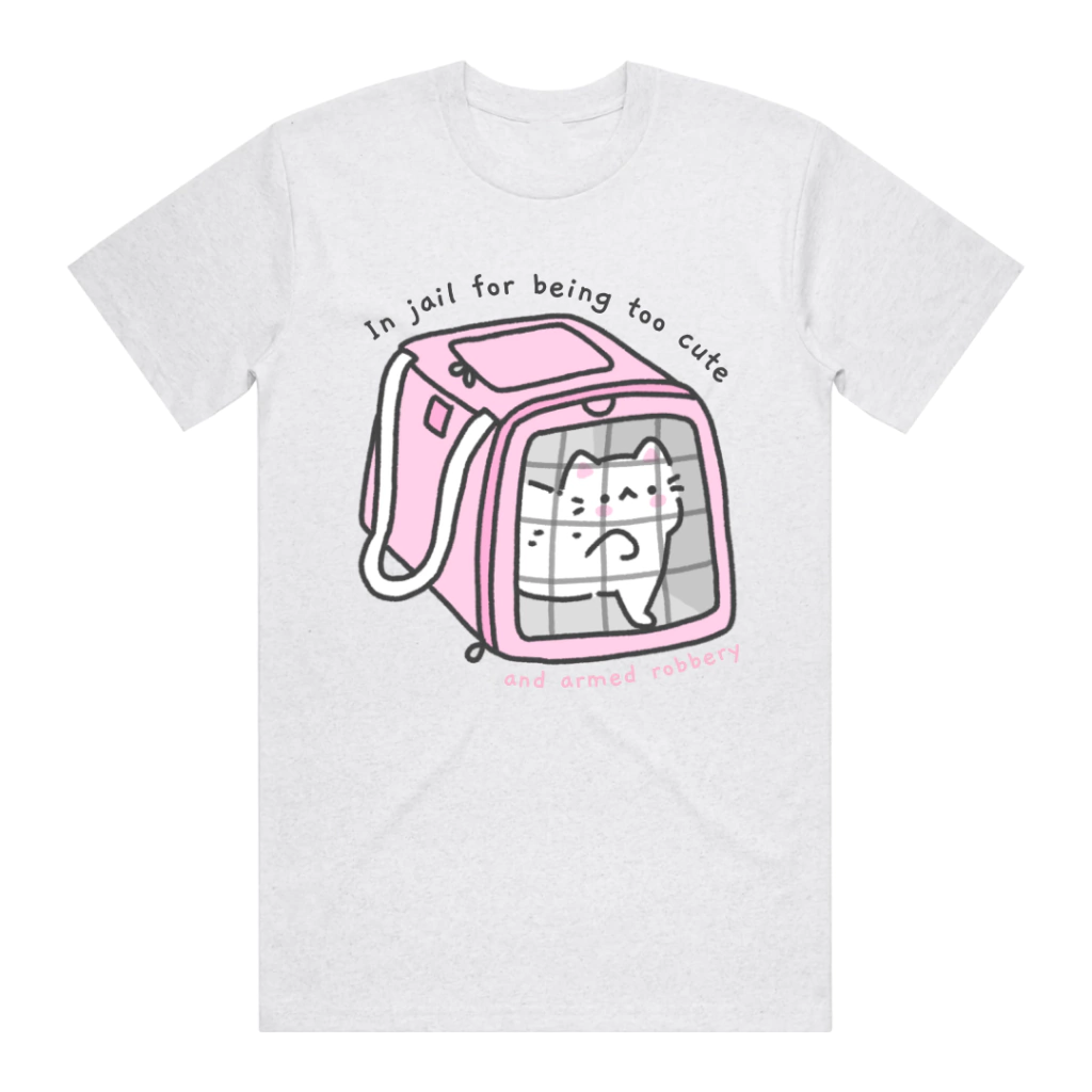 Camiseta estampa original Sharksock In Jail For Being Too Cute (And Armed Robbery)! Pintado à mão com tinta de tecido. 100% Aglodão, sob encomenda.